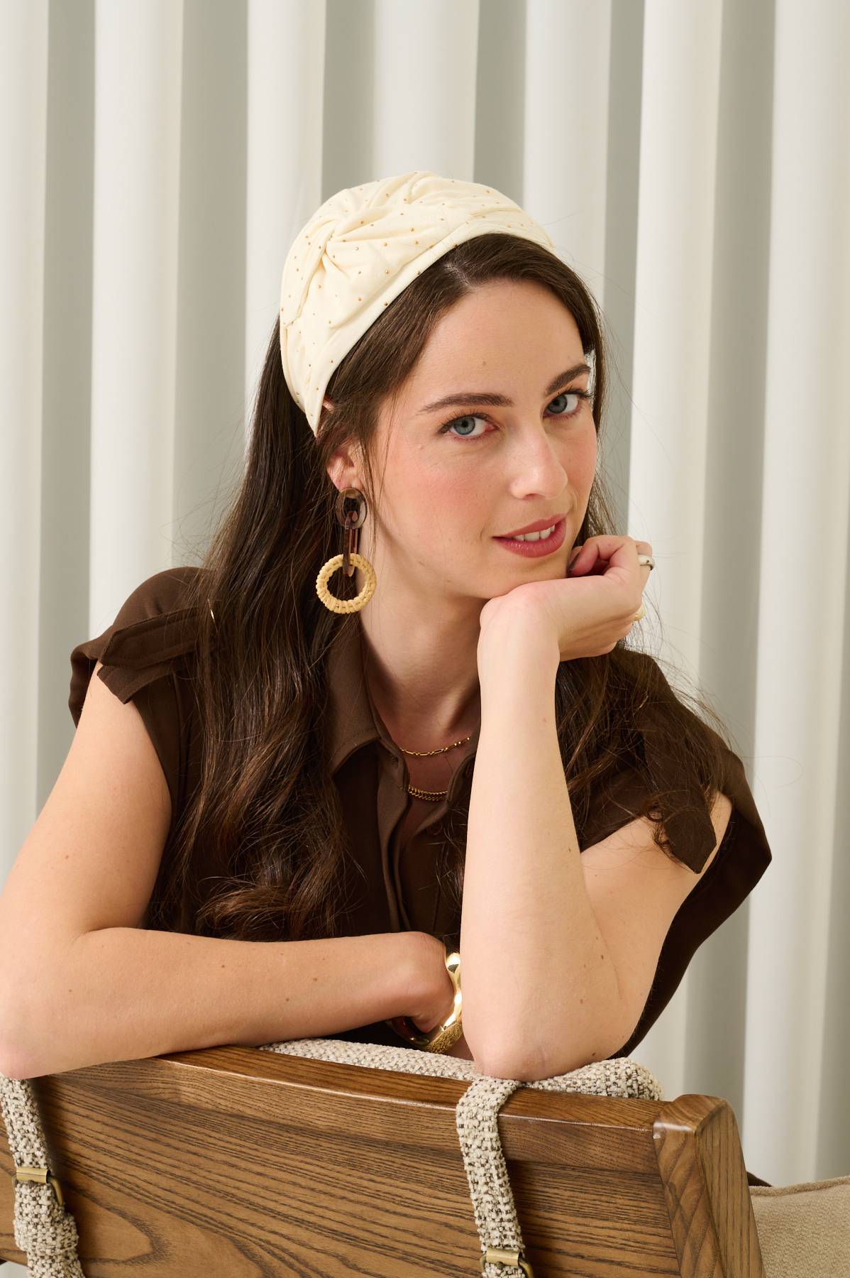 סרט לשיער – טורבן צד – 'ספארק' – קרם ואבני זהב