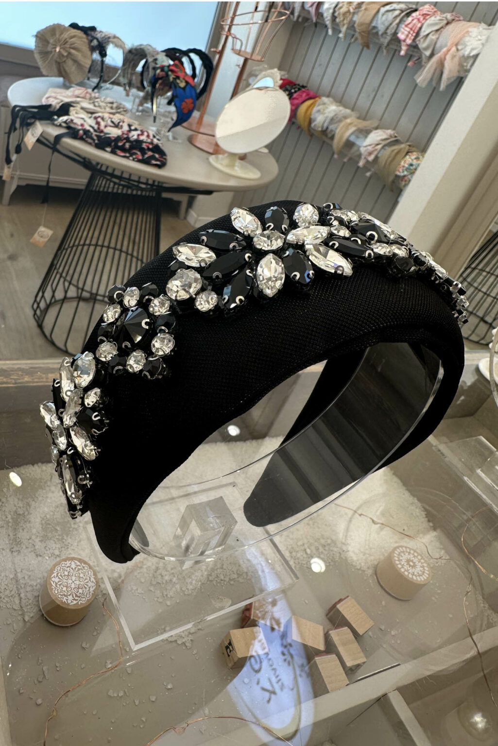 קשת נוחה ללבישה, בסיס בד לייקרה המעוטר באבני זכוכית יוקרתיות.