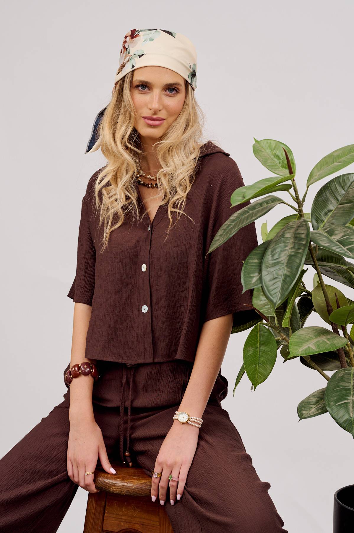 עשויה סאטן מודפס מבריק ורך למגע, מושלמת לסטייל חגיגי או יומיומי זוהר.