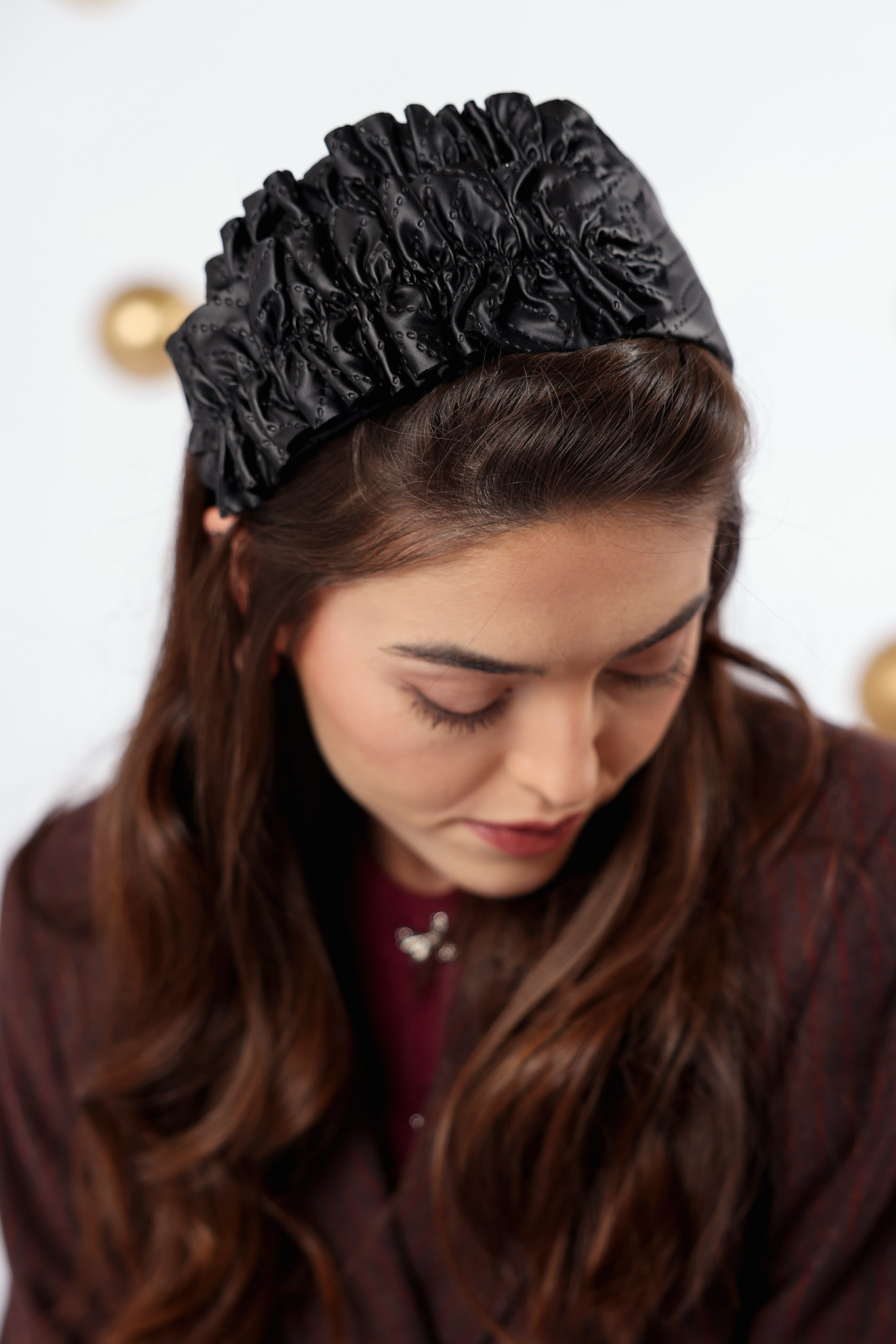 סוג הבד: דמוי עור נמתח בצבע שחור בשילוב ריקועים בבד